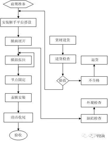 (1)膜面安裝前對現(xiàn)場情況進行確認,會同相關單位完成對主結(jié)構的交接工作。