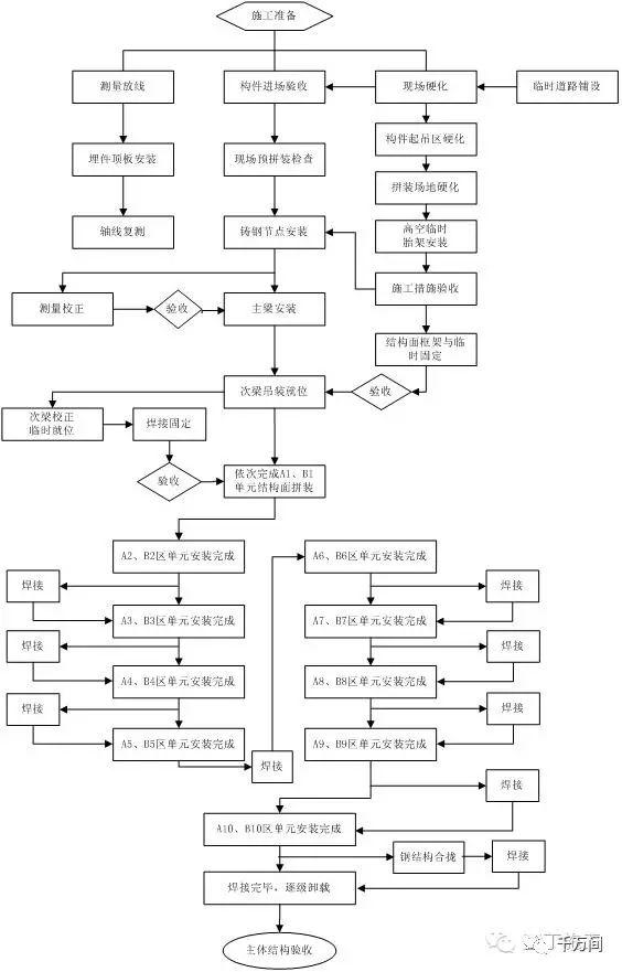(9)吊裝耳板、臨時措施連接件、膜結(jié)構連接件以及其他專業(yè)需要在工廠進行裝配焊接的連接件或二次結(jié)構,必須在工廠定位焊接完畢。