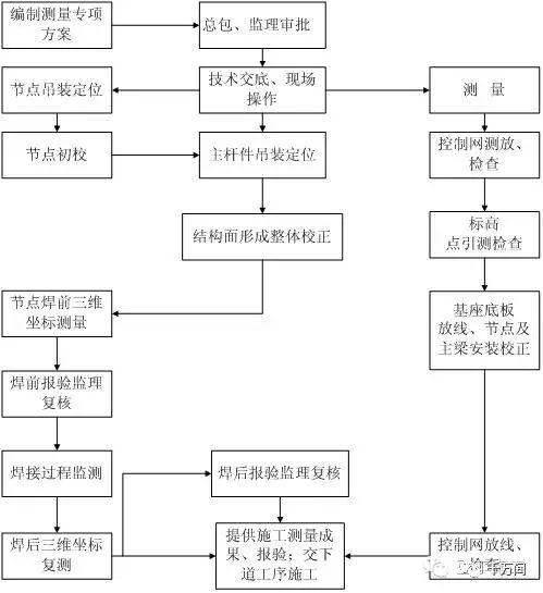 2)拼裝好的構件吊裝到位后,利用臨時支撐胎架進行臨時固定,采用高精度全站儀進行測量。