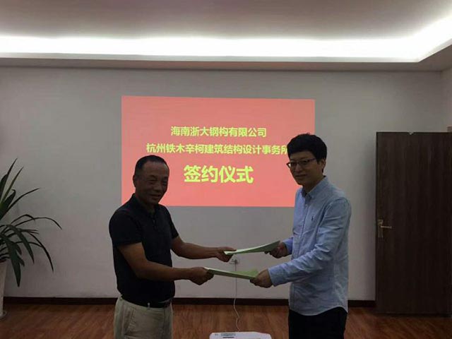 我司與具有豐富科研創(chuàng)新實力的杭州鐵木辛柯事務(wù)所進行裝配式建筑戰(zhàn)略合作,標志著海南浙大鋼構(gòu)的未來將以發(fā)展裝配式鋼結(jié)構(gòu)綠色建筑為重點,助推海南當?shù)禺a(chǎn)業(yè)轉(zhuǎn)型升級,共建綠色生態(tài)文明。