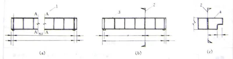 詳圖的尺寸由尺寸線、尺寸界線、尺寸起止點(diǎn)組成;尺寸單位除標(biāo)高以m為單位外,其余尺寸均以mm為單位,且尺寸標(biāo)注時(shí)不再書寫單位。一個(gè)構(gòu)件的尺寸線一般為三道,由內(nèi)向外依次為:加工尺寸線、裝配尺寸線、安裝尺寸線。當(dāng)構(gòu)件圖形相同,僅零件布置或構(gòu)件長度不同時(shí),可以一個(gè)構(gòu)件圖形及多道尺寸線表示A、B、C!……等多個(gè)構(gòu)件,但最多不超過5個(gè)。
