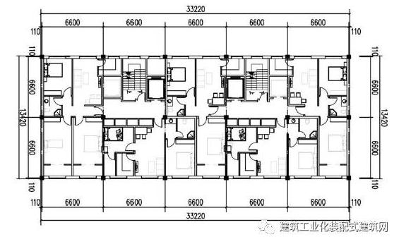 項(xiàng)目本著鋼結(jié)構(gòu)裝配化理念進(jìn)行戶型設(shè)計(jì),住宅的柱網(wǎng)統(tǒng)一為6.6mx6.6m,工廠預(yù)制率達(dá)到100%。根據(jù)標(biāo)準(zhǔn)化的模塊,再進(jìn)一步進(jìn)行標(biāo)準(zhǔn)化的部品設(shè)計(jì),形成標(biāo)準(zhǔn)化的鋼結(jié)構(gòu)樓梯構(gòu)件、預(yù)制PC外墻、預(yù)制蒸壓砂加氣條板內(nèi)、外墻大大減少結(jié)構(gòu)構(gòu)件數(shù)量,為建筑規(guī)模量化生產(chǎn)提供基礎(chǔ),顯著提高構(gòu)配件的生產(chǎn)效率,有效地減少材料浪費(fèi),節(jié)約資源,節(jié)能降耗。