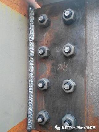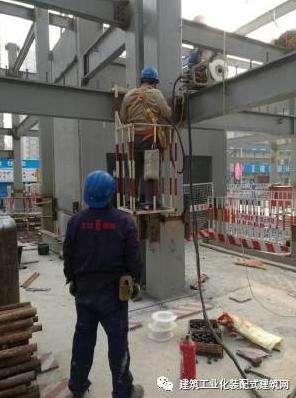 ▲ 結(jié)構(gòu)構(gòu)件中心位置調(diào)整后,安裝高強(qiáng)螺栓及焊接