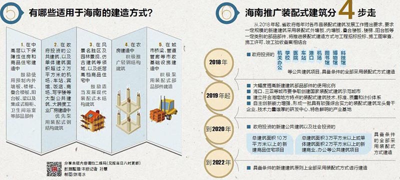 裝配式建筑是目前我國(guó)正在大力推廣應(yīng)用的綠色環(huán)保建筑形式,目前在海南正處于推廣起步階段。省政府近日印發(fā)《關(guān)于大力發(fā)展裝配式建筑的實(shí)施意見(jiàn)》,要求深入貫徹省第七次黨代會(huì)精神,在全省大力發(fā)展裝配式建筑,通過(guò)建造方式的變革,促進(jìn)建筑業(yè)轉(zhuǎn)型升級(jí)。實(shí)施意見(jiàn)確定了海南省裝配式建筑發(fā)展目標(biāo),并鼓勵(lì)各市縣政府根據(jù)本市縣情況制定發(fā)展目標(biāo)。