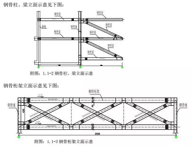 附圖:1.1-1鋼骨柱、梁與鋼桁架梁平面布置示意圖