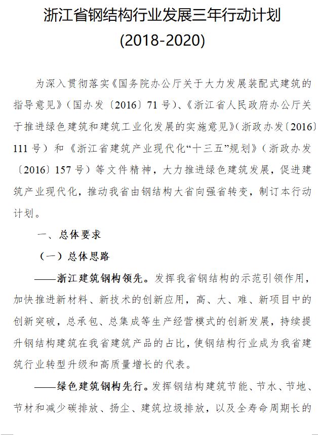 各省全力出擊之浙江省 ——印發(fā)《浙江省鋼結(jié)構(gòu)行業(yè)發(fā)展三年行動(dòng)計(jì)劃(2018-2020)》