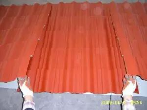 指兩屋面瓦按角度和長度切斷后底部安裝接水處理的施工.首先在瓦的下面安裝接水材料(即天溝),然后用防水粘合劑或水泥做收尾處理。