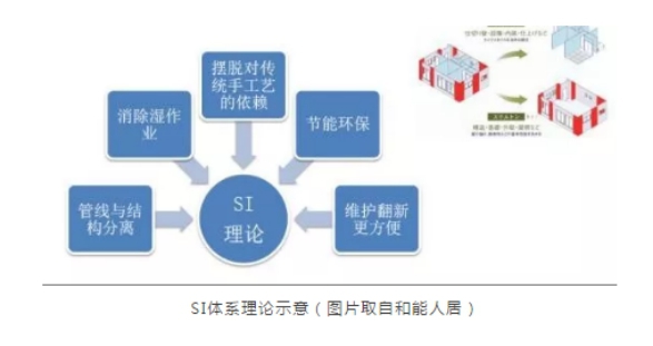 1、SI理論的體系基礎(chǔ)。S就是支撐體(Skeleton)——建筑主體結(jié)構(gòu);I就是填充物(Infill),包括除了主體結(jié)構(gòu)外建筑裝飾材料、機(jī)電設(shè)備、管線等。裝配式裝修就是要做到支撐體與填充物的分離,一般主要是指管線與結(jié)構(gòu)體分離、裝修與結(jié)構(gòu)體分離。