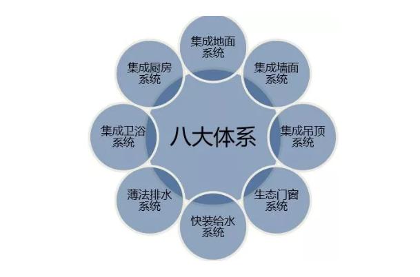裝配式裝修在工程應(yīng)用的技術(shù)體系包括集成地面系統(tǒng)、集成墻面系統(tǒng)、集成吊頂系統(tǒng)、生態(tài)門窗系統(tǒng)、快裝給水系統(tǒng)、薄法排水系統(tǒng)、集成衛(wèi)浴系統(tǒng)、集成廚房系統(tǒng)。