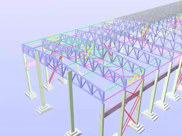 5、支撐和拉條部分:一般材料都是圓鋼,且通常情況下按圖紙計(jì)算實(shí)際長(zhǎng)度,同樣要注意相對(duì)應(yīng)的節(jié)點(diǎn)(連接板和螺栓)。
