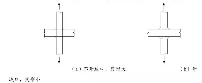 5)T形接頭板厚較大時(shí)采用開坡口角對(duì)接焊縫,見圖3: