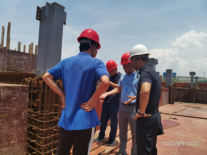會(huì)議結(jié)束后,方總等人陪同考察團(tuán)到現(xiàn)場(chǎng)參觀21#-22#樓,對(duì)現(xiàn)場(chǎng)主體鋼結(jié)構(gòu)施工進(jìn)度、衛(wèi)生間、廚房等降板區(qū)域防火、地下室施工進(jìn)度、鋼柱牛腿、土建梁板鋼筋搭接等進(jìn)行了深入交流,最后參觀了樣板間地腳螺栓預(yù)埋。