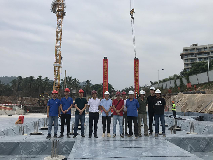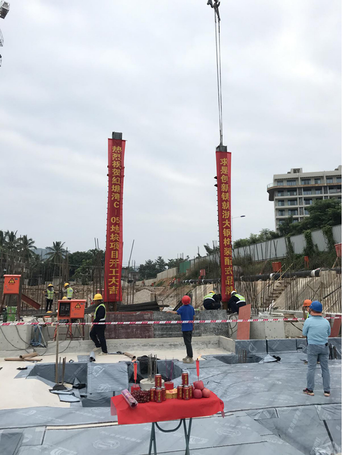 2020年11月3日上午9點18分。隨著鞭炮聲的響起,在北京城建地產(chǎn)副總經(jīng)理劉向、北京雙圓監(jiān)理總監(jiān)陳寶棟、北京城建道橋集團(tuán)項目經(jīng)理李行等人的共同見證下,由海南浙大鋼構(gòu)有限公司承建的三亞紅塘灣旅游度假區(qū)C-05地塊項目一標(biāo)段鋼結(jié)構(gòu)工程首根鋼柱吊裝順利完成,三亞紅塘灣C-05鋼結(jié)構(gòu)工程正式進(jìn)入施工階段。