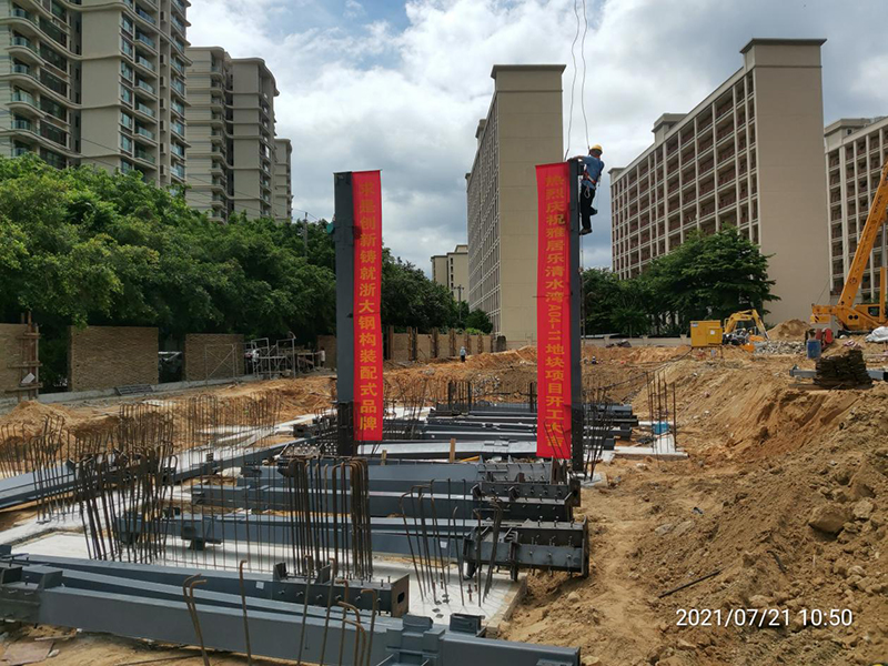 2021年7月21日上午10點(diǎn)30分,在甲方單位、總包單位領(lǐng)導(dǎo)的共同見(jiàn)證下。由浙大鋼構(gòu)承建的海南清水灣A04-11地塊項(xiàng)目首根鋼柱順利吊裝完成,項(xiàng)目正式進(jìn)入鋼結(jié)構(gòu)主體施工階段。