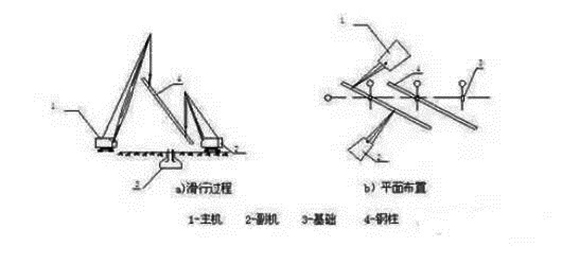 鋼柱材料卸貨時(shí),根據(jù)鋼柱構(gòu)件編號(hào)按照施工圖紙一一就位。構(gòu)件就位后采用單機(jī)旋轉(zhuǎn)法吊裝,為提高吊裝效率,在堆放柱時(shí),盡量使柱的綁扎點(diǎn)、柱腳中心與基礎(chǔ)中心三點(diǎn)共圓弧。