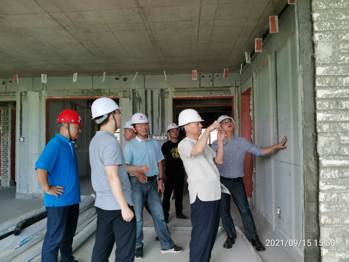 考察團(tuán)先參觀了香樟苑住宅項(xiàng)目:項(xiàng)目由19棟鋼結(jié)構(gòu)裝配式住宅樓組成,已于2020年11月完成主體結(jié)構(gòu)封頂,現(xiàn)精裝修已經(jīng)處于收尾階段,預(yù)計(jì)年底精裝交房。領(lǐng)導(dǎo)團(tuán)考察了項(xiàng)目的22#樓3層、1#樓3層,分別以鋼結(jié)構(gòu)鋼梁填充、裝配式內(nèi)墻板與鋼柱交接、精裝修處理做法等節(jié)點(diǎn)進(jìn)行了討論交流。