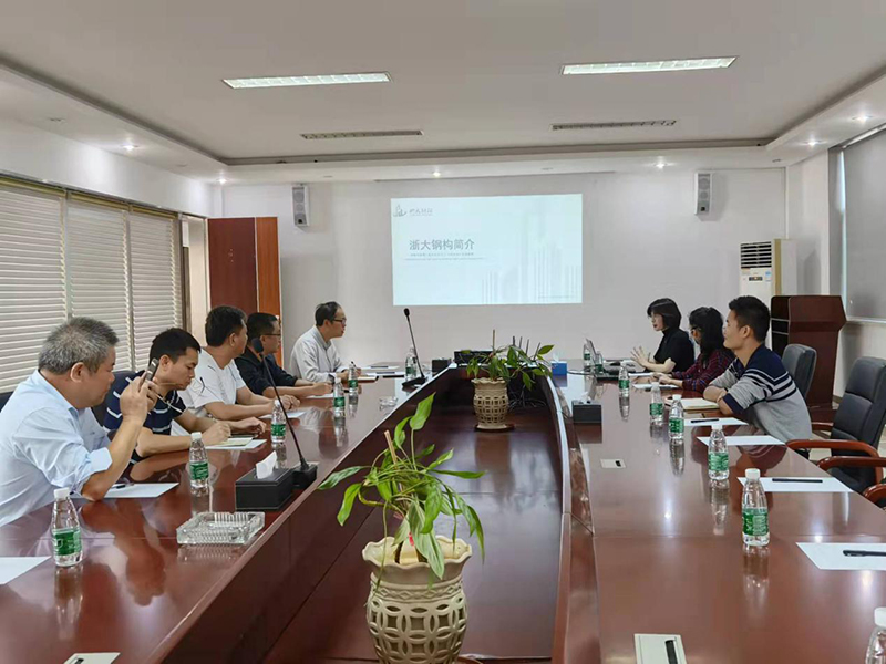 在會議室技術(shù)交流座談會上,劉總通過PPT向考察小組講述了我司的發(fā)展歷程及海南鋼結(jié)構(gòu)裝配式的應(yīng)用與實踐,重點介紹了我司專利技術(shù)——隱式鋼框架支撐結(jié)構(gòu)體系,雙方深入交流,與會氣氛熱烈。