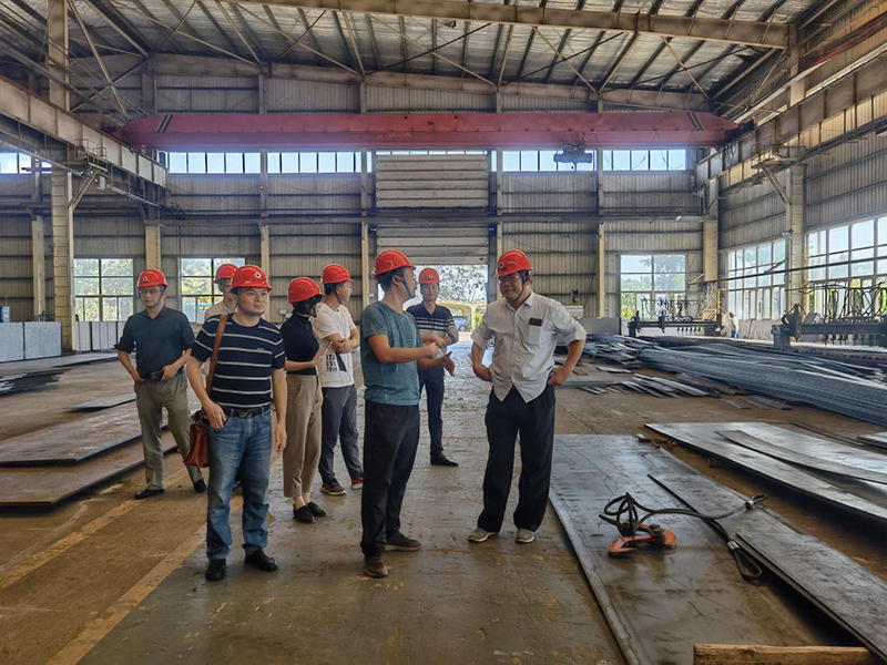 會后,考察團小組來到廠區(qū)加工生產(chǎn)基地參觀,劉總將各工廠的規(guī)模、生產(chǎn)能力、鋼結(jié)構(gòu)的全生產(chǎn)周期等情況向考察小組詳細講解。雙方針對結(jié)構(gòu)形式、墻體材料、施工工藝與工期、鋼柱與鋼梁原材料供應(yīng)情況、寬鋼管柱的加工、采購流程等方面進行交流探討。
