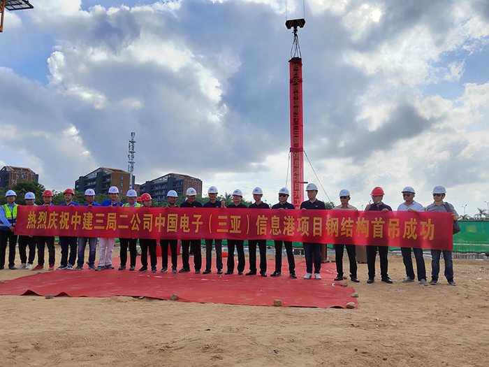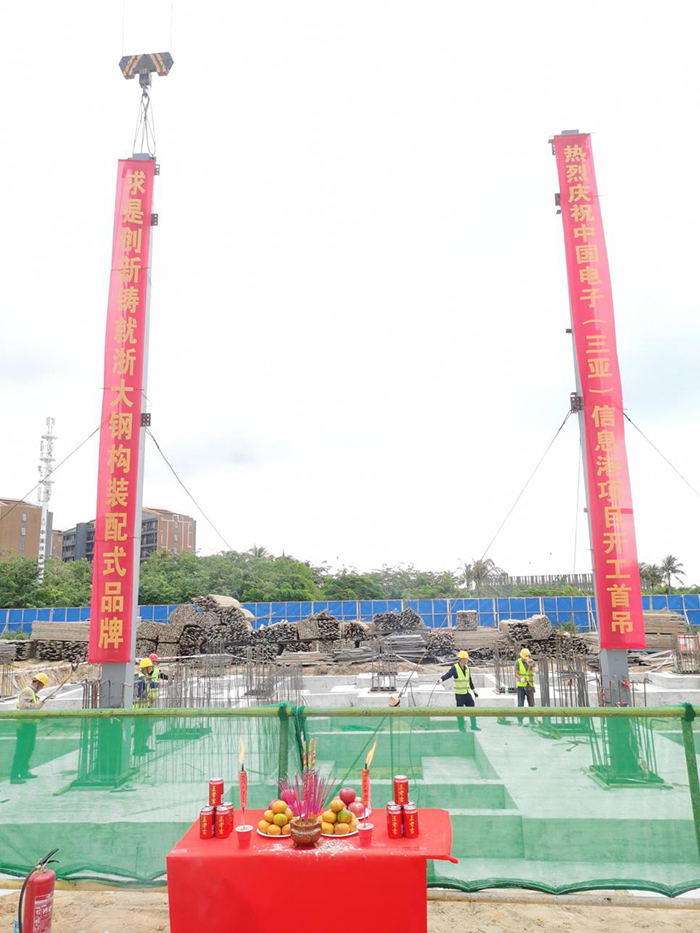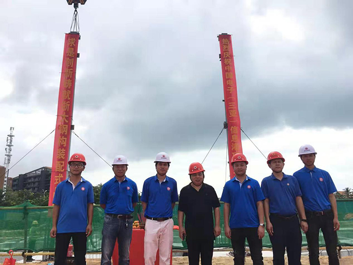 2021年11月17日上午9點(diǎn)30分,在甲方單位、監(jiān)理單位和總包單位等領(lǐng)導(dǎo)的共同見證下,由海南浙大鋼構(gòu)承建的中國電子(三亞)信息港03-06-1地塊鋼結(jié)構(gòu)工程首根鋼柱吊裝順利完成,項(xiàng)目正式進(jìn)入施工階段。