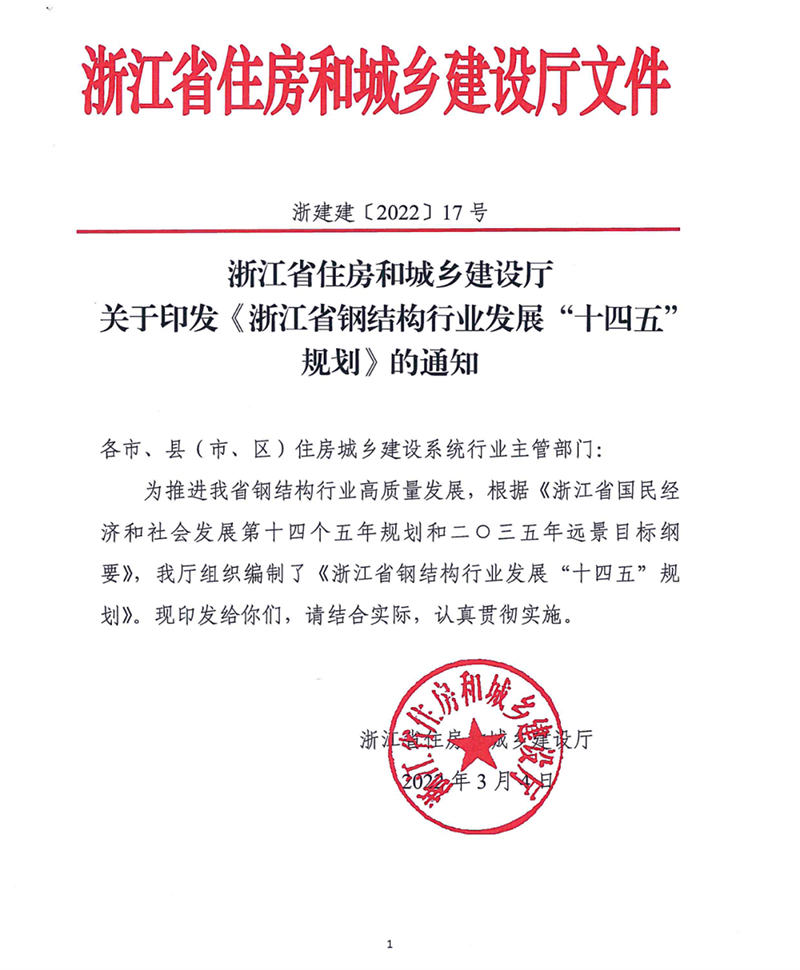 關(guān)于印發(fā)《浙江省鋼結(jié)構(gòu)行業(yè)發(fā)展“十四五”規(guī)劃》的通知