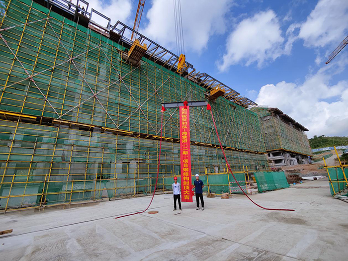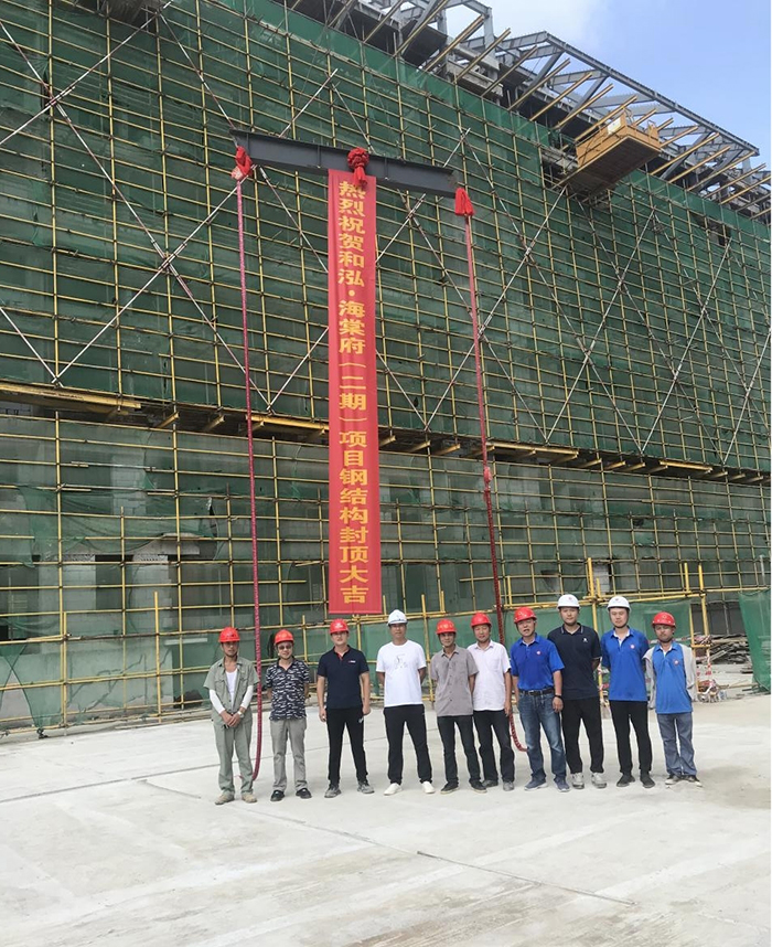 2022年5月31日10:08分,由海南浙大鋼構有限公司承建的和泓·海棠府(二期)鋼結構裝配式住宅項目在施工現(xiàn)場順利舉行封頂儀式,建設方三亞順澤劉總,海南省建設工程顧問監(jiān)理公司陳總、專監(jiān)龍工、楊工,中外建華誠項目總李總,安全部鄧部長及我司項目經理李玉鋼等出席參加封頂儀式,共同見證這一時刻。