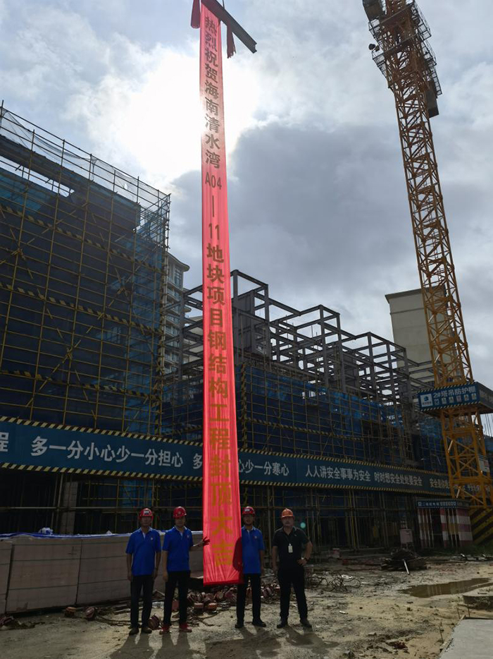 2022年6月11日上午9:00,由海南浙大鋼構(gòu)有限公司承建的海南清水灣雅居樂A04-11地塊鋼結(jié)構(gòu)裝配式住宅項(xiàng)目順利封頂。歷經(jīng)多個(gè)日夜的辛苦努力,終獲成果,建設(shè)單位吳工與我司項(xiàng)目經(jīng)理?xiàng)顚W(xué)文、周杰等共同見證,分享喜悅。