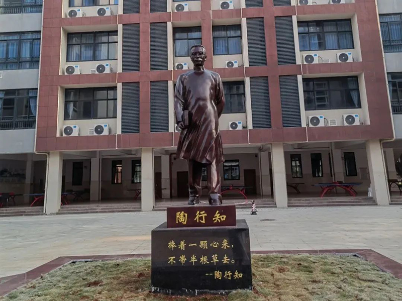陸校長(zhǎng)向嘉賓們一一介紹了雕塑的由來(lái)。"捧著一顆心來(lái),不帶半根草去",是平民教育的踐行者陶行知先生的教育理念。“人·愛(ài)·創(chuàng)新”是北師大精神和文化的高度概括,蘊(yùn)含了北師海附辦學(xué)5年所凝結(jié)形成的精神內(nèi)核,是全體北師海附人追求真理、矢志創(chuàng)新的真實(shí)寫照。他強(qiáng)調(diào),全校教師要堅(jiān)定“五育并舉,立德樹(shù)人”的育人目標(biāo),以陶行知先生為榜樣,以校風(fēng)校訓(xùn)為崇高指引,不斷為民族育英才。