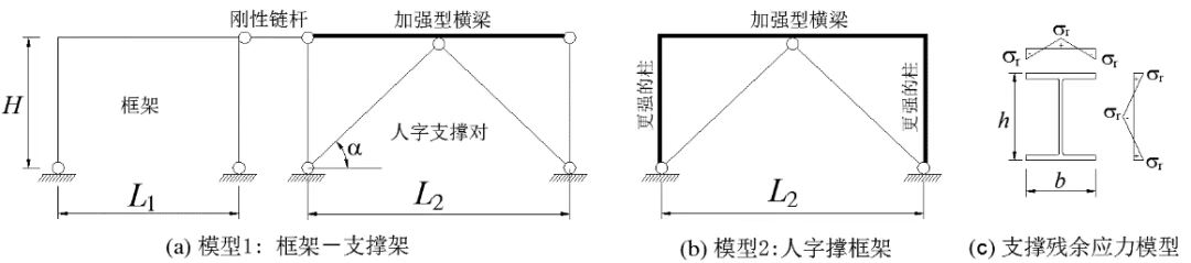 首先,我們來(lái)看看真實(shí)的框架-支撐雙重抗側(cè)力結(jié)構(gòu)的抗側(cè)力性能。圖1是兩種雙重抗側(cè)力結(jié)構(gòu)形式: