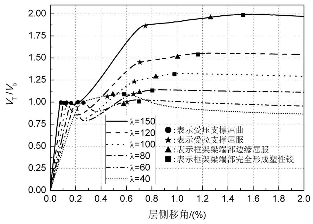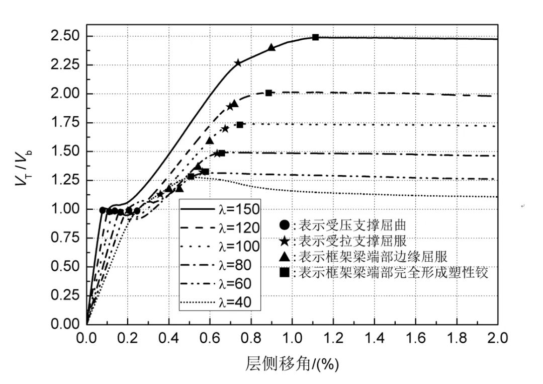框架和支撐的抗側(cè)承載力各占一半時(shí),曲線如圖2所示。