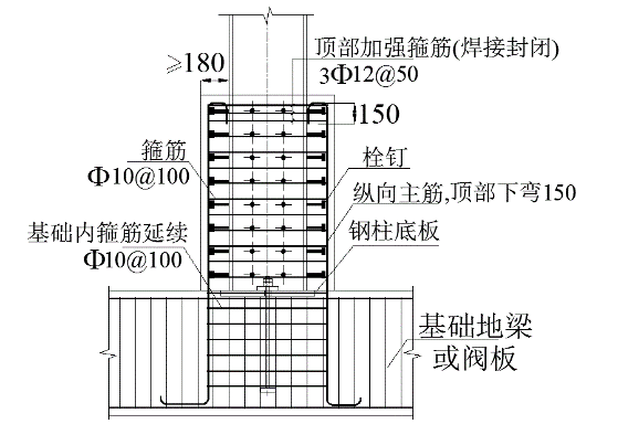 它讓人困惑的地方是:外包混凝土是鋼柱的支座還是與鋼截面共同工作的、即類似于SRC柱(勁性混凝土柱)的一種柱腳?