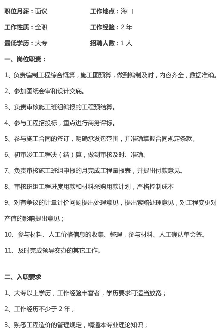 造價員/造價工程師