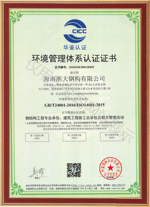 環(huán)境管理體系認(rèn)證證書