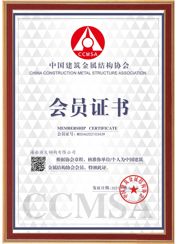 中國(guó)建筑金屬結(jié)構(gòu)協(xié)會(huì)會(huì)員證書
