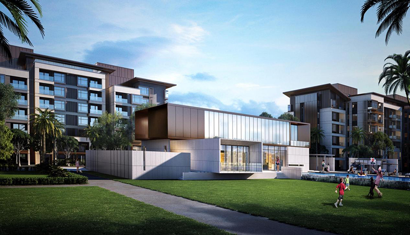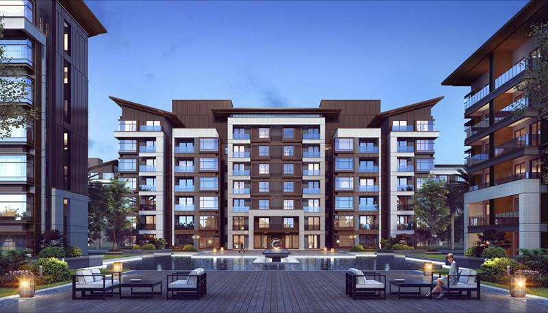 一期規(guī)劃用地面積135634.2m2,總建筑面積195259.98m2,計(jì)容積率建筑面積為142397㎡,其中度假式住宅139562.54㎡,商業(yè)986.8㎡,公建配套1848㎡。建筑地上7層,局部地下1層。