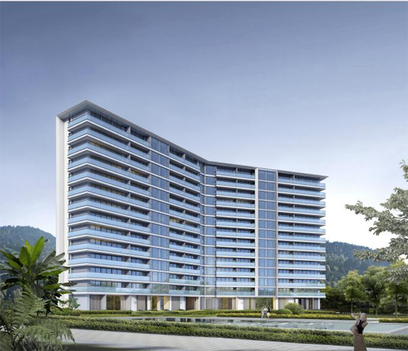 西區(qū)主要由6棟高層住宅及3棟多層康養(yǎng)公寓建筑組成,6棟住宅建筑層數(shù)為地上 14 層,地下 2 層,最高高度 44.8 米?叼B(yǎng)公寓為地上8層,地下1層。