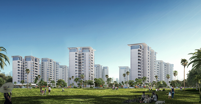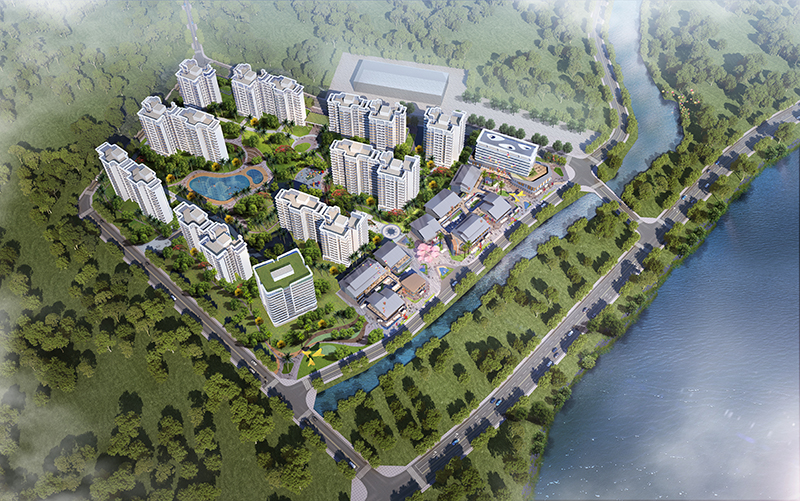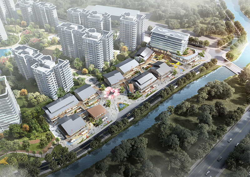 項(xiàng)目總建筑面積 147049.14 ㎡,其中地上計(jì)容建筑面積 105298.89 ㎡, 架空層、屋頂建筑面積 5007.3 ㎡,地下建筑面積 36742.95 ㎡。地塊西側(cè)包括 17 棟高層住宅建筑, 10~13 層,高度 40 米以下,住宅計(jì)容建筑面積 88534.06 ㎡,社區(qū)配套面積 970 ㎡;東側(cè)商業(yè)街北端為一棟商業(yè)樓,8 層,高度 28m,其余為兩層高的商業(yè)街,商業(yè)計(jì)容建筑面積 15794.83 ㎡。