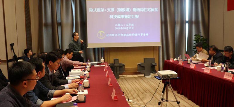 2018年10月12日,浙江省技術經紀人協(xié)會在杭州組織召開了由鐵木辛柯研發(fā)的“隱式框架+支撐(鋼板墻)鋼結構住宅體系”科技成果鑒定會,鑒定會由清華大學郭彥林教授、全國勘察設計大師王立軍教授級高工、浙江省院總工楊學林教授級高工、蘇州科技大學顧強教授、江蘇省院總工金如元研究員、浙大院總工肖志斌研究員、四川省院常務副總工趙仕興教授級高工等多位知名專家學者組成鑒定專家委員會。鑒定專家聽取了研發(fā)總結、試驗檢測、用戶意見和科技查新等報告,查看了樣品資料,經過深入質詢和討論,最后一致認為“研究成果總體達到國際先進水平,其中寬鋼管混凝土柱的承載力計算方法、節(jié)點構造及設計達到國際領先水平”,同意通過鑒定。