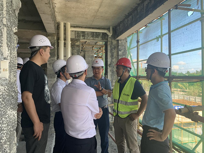 2021年5月18日下午,考察團(tuán)到融創(chuàng)(碧桂園)萬(wàn)寧海南臻園項(xiàng)目現(xiàn)場(chǎng)考察,詳細(xì)了解了結(jié)構(gòu)形式、墻體材料、施工工藝、施工速度、鋼結(jié)構(gòu)使用的鋼柱、鋼梁原材料供應(yīng)情況、寬鋼管柱的加工、采購(gòu)流程及工藝等方面,重點(diǎn)了解了隱式框架節(jié)點(diǎn)。李秘書長(zhǎng)提出:鋼結(jié)構(gòu)建筑可以通過(guò)提高材質(zhì)等級(jí),將構(gòu)件截面尺寸、厚度進(jìn)一步減小,滿足住宅建筑適應(yīng)性同時(shí)給建筑更大使用空間;并提出住宅鋼結(jié)構(gòu)的構(gòu)件規(guī)格應(yīng)該進(jìn)行標(biāo)準(zhǔn)化設(shè)計(jì),方便成品型材采購(gòu)及智能制造。