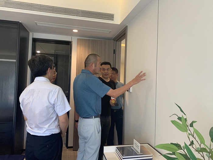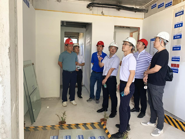 隨后,考察團(tuán)蒞臨藍(lán)灣小鎮(zhèn)中心樣板樓。該樓棟主體鋼結(jié)構(gòu)由我司施工,目前已經(jīng)完成了精裝修并對(duì)外展示。綠城高地公司徐總詳細(xì)介紹了應(yīng)用在該樣板樓的裝配式墻板、裝配式樓板、整體衛(wèi)浴等目前國(guó)內(nèi)領(lǐng)先的裝配式綠色環(huán)保材料,并實(shí)地體驗(yàn)應(yīng)用效果。徐總表示,小鎮(zhèn)中心組團(tuán)樣板樓應(yīng)用了裝配式鋼結(jié)構(gòu)、裝配式墻體結(jié)構(gòu)、裝配式整體衛(wèi)浴等一系列裝配式部品部件,是裝配式主體結(jié)構(gòu)、二次結(jié)構(gòu)以及裝配式內(nèi)裝的完美結(jié)合。能夠從根本上解決墻板開(kāi)裂及滲漏水等問(wèn)題,同時(shí)也徹底解決了傳統(tǒng)內(nèi)裝的質(zhì)量通病,大大提高了裝配率及施工速度,一定是未來(lái)裝配式建筑的發(fā)展趨勢(shì)。